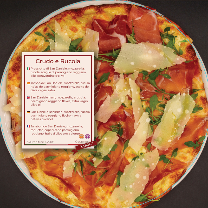 Jamon de Parma – Rucula de Huerto – Hojuelas de Parmesano – Aceite de Oliva Virgen Extra